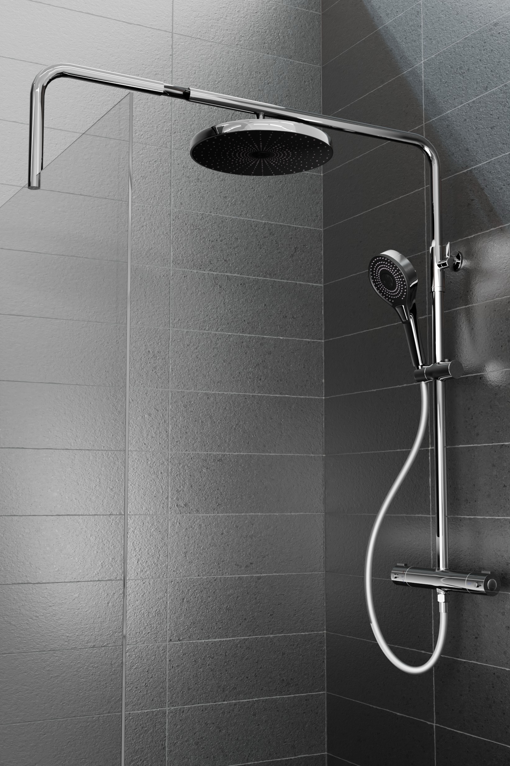 Wasserburg zuhanyszett termosztátos csapteleppel és zuhanyfal merevítővel, króm